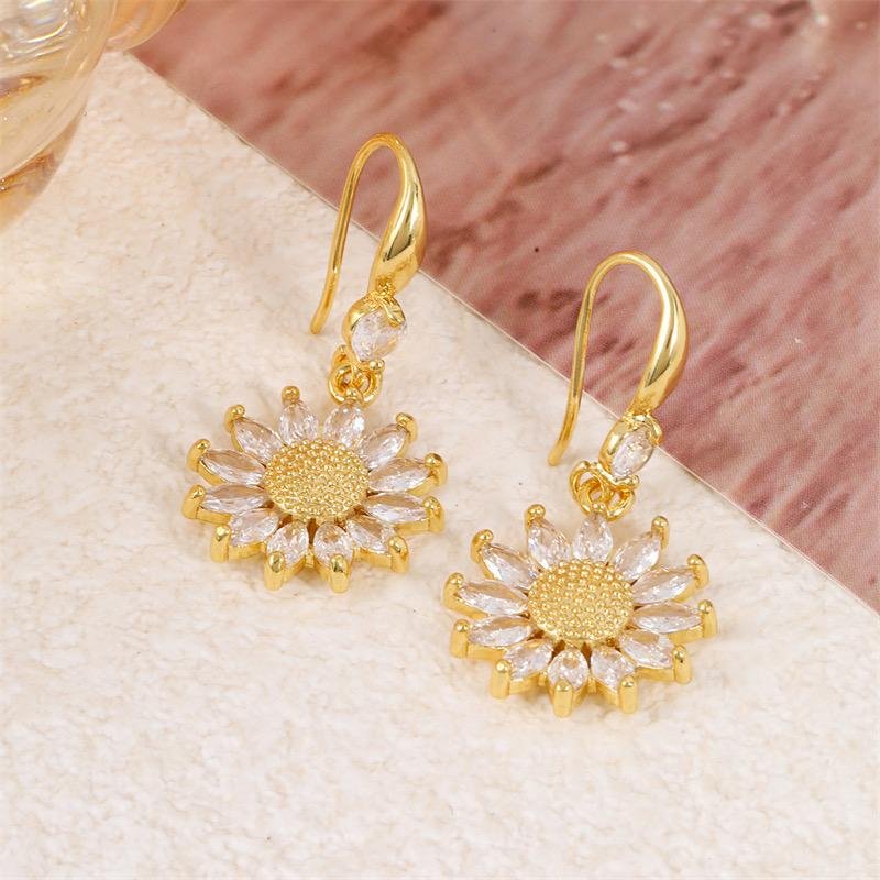 Aretes girasol 3.6 cm de largo chapado en oro de 18k