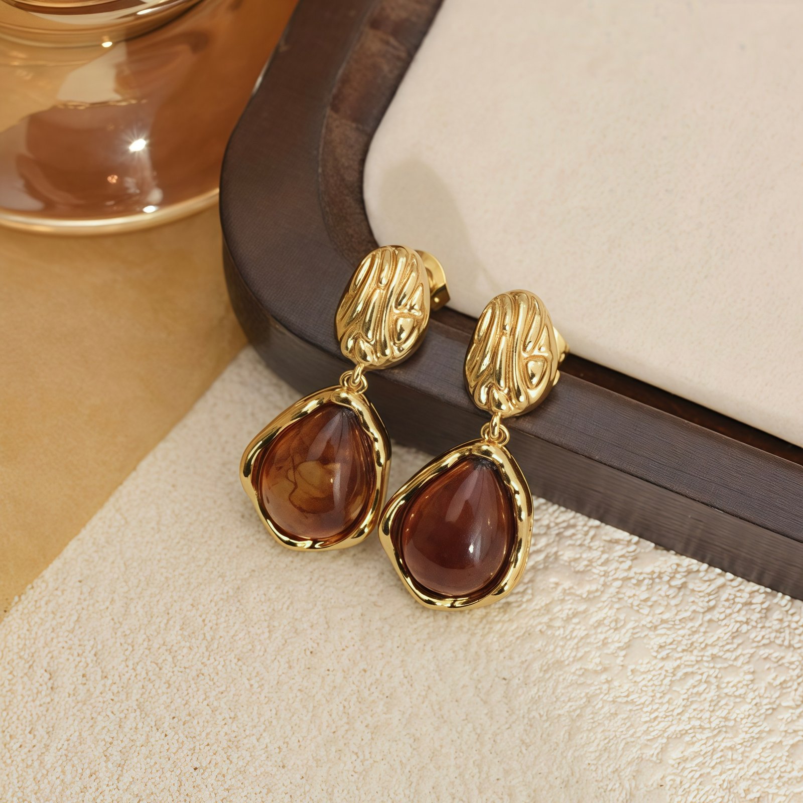 Aretes largos gota cafe acero inoxidable cantidad