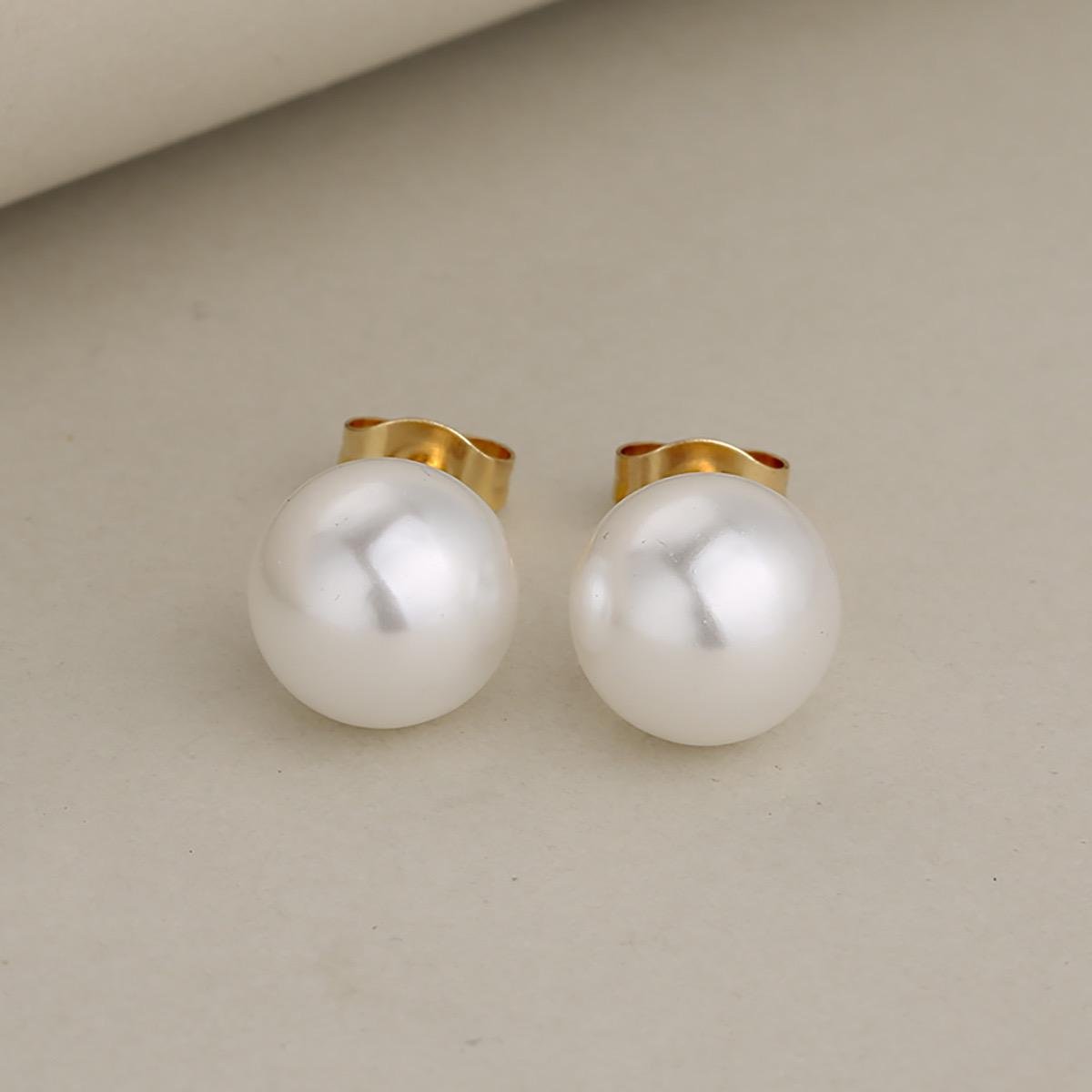 Aretes perla 10mm Acero inoxidable chapado en oro de 18k