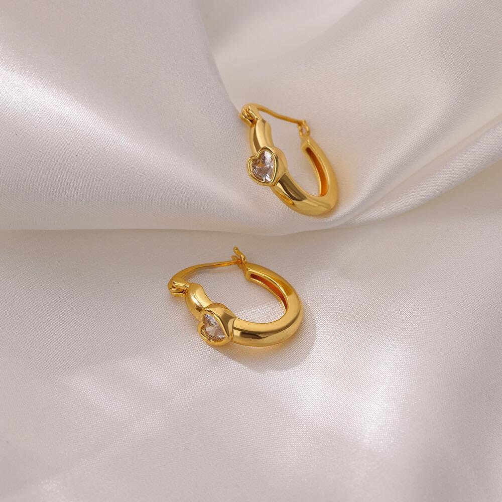 Argollas corazon circonia Chapado en oro geométricos 18k
