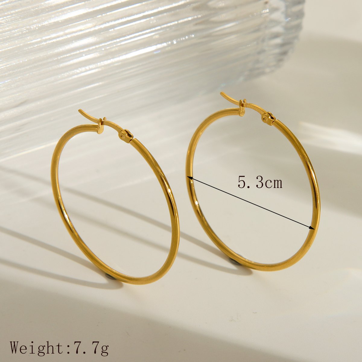 Argollas lisas 5.3cm acero inoxidable chapados en oro 18k