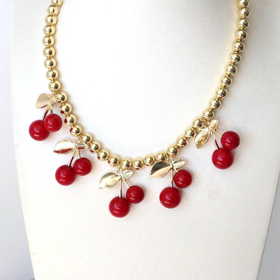 / Collar cerezas cuentas doradas chapados en oro de 18k