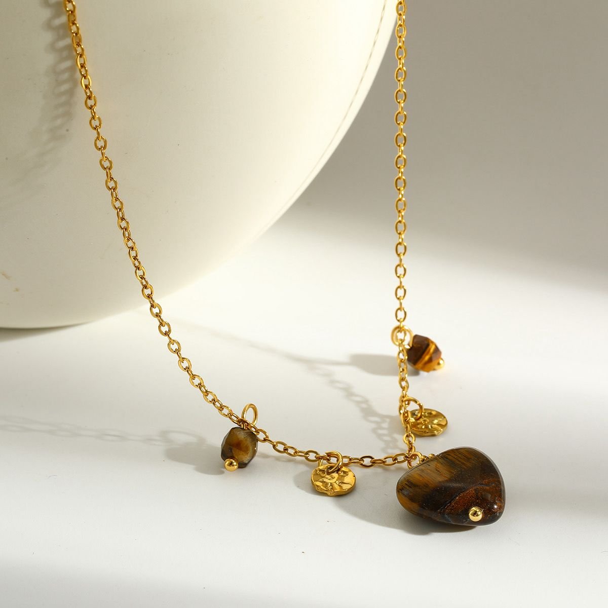 Collar corazon piedra cafe acero inoxidable chapado en oro de 18k