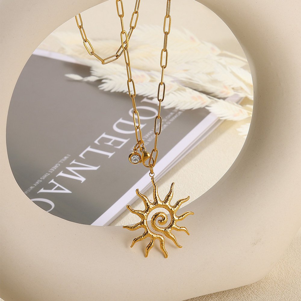 Collar dorado eslabón sol radiante Acero inoxidable cantidad