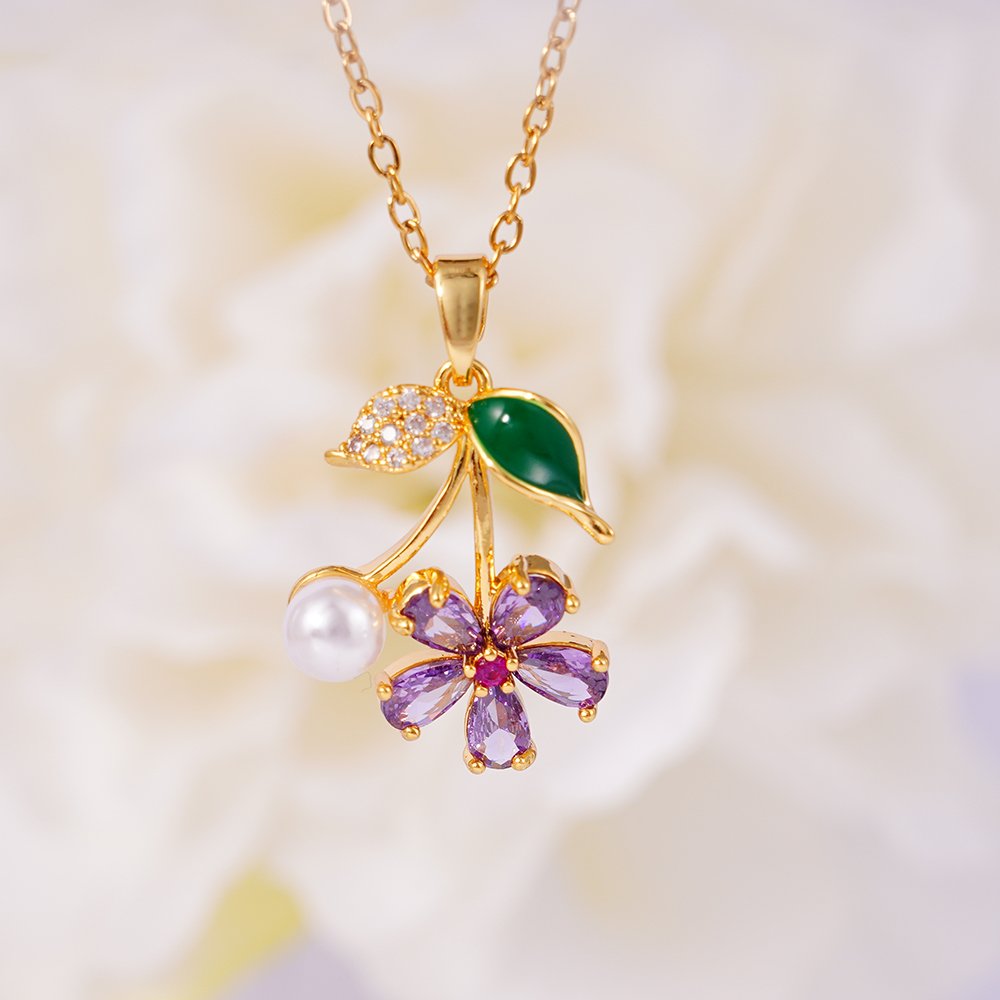 collar dorado flor lila cristal perla Acero inoxidable cantidad