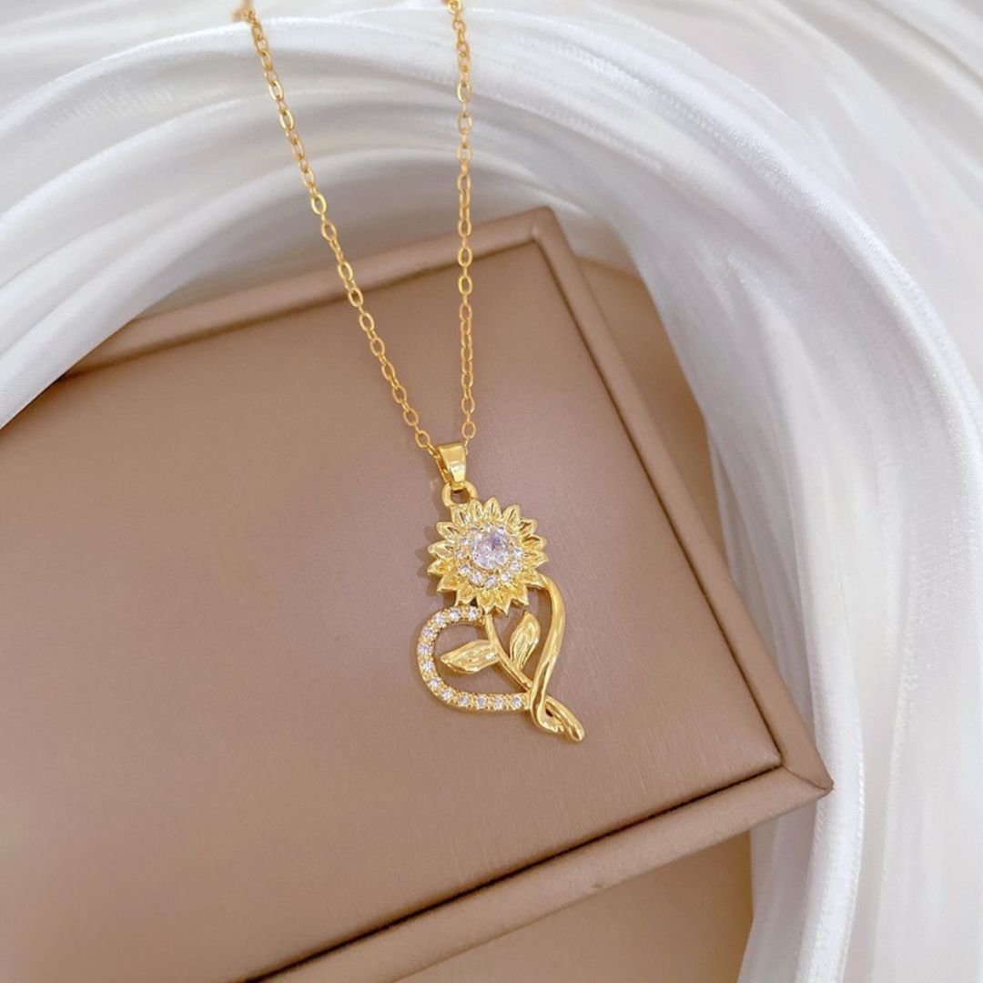 Collar dorado girasol con silueta corazon Acero titanio cantidad
