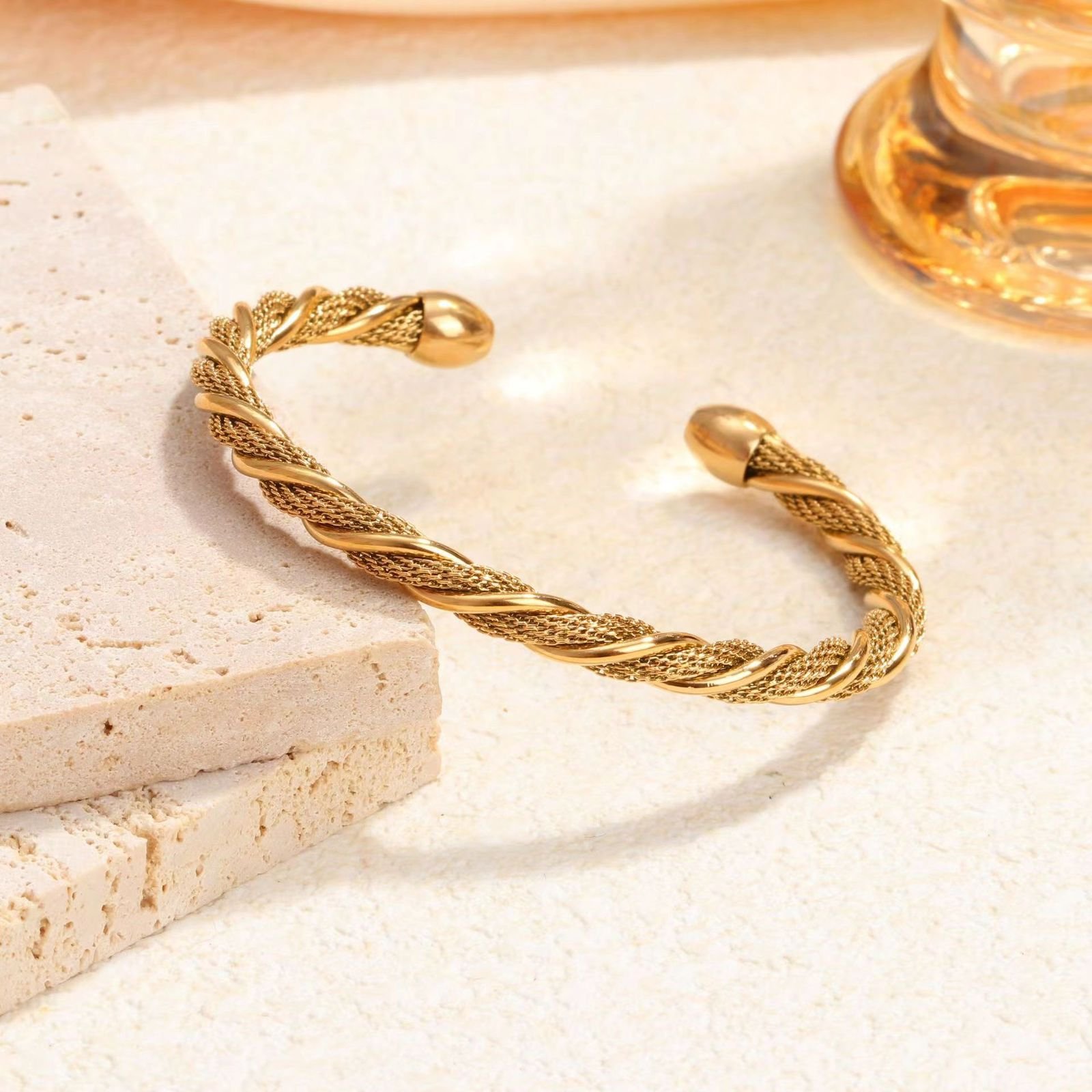 Brazalete Flor de cerezo acero inoxidable chapado en oro de 18k