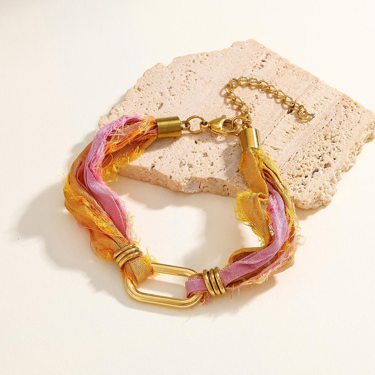 Pulsera bandana naranja rosa Acero inoxidable chapado en oro de 18k
