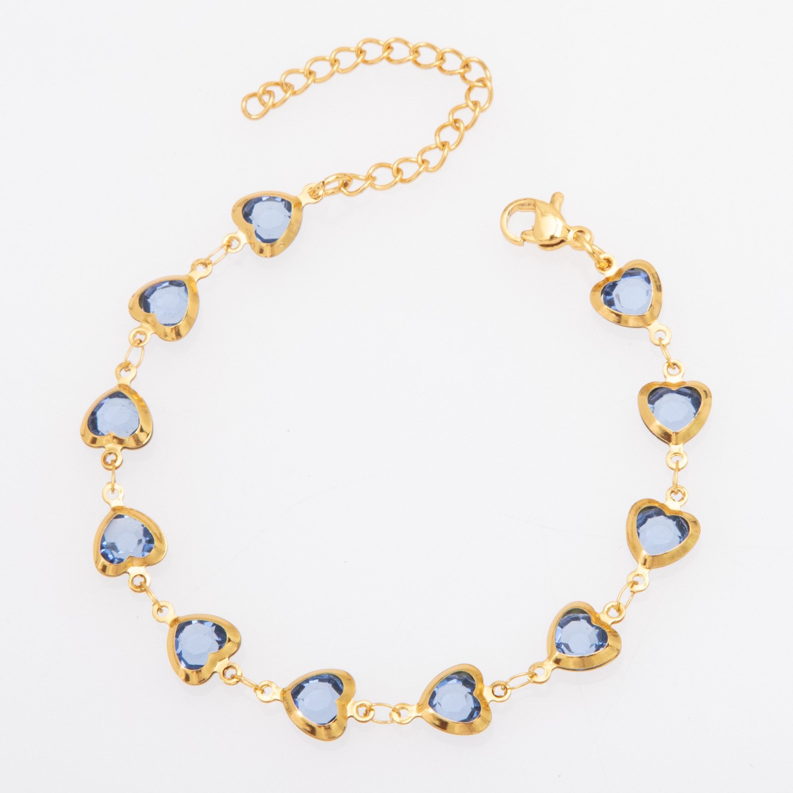 Pulsera corazones celestes chapados en oro de 18k