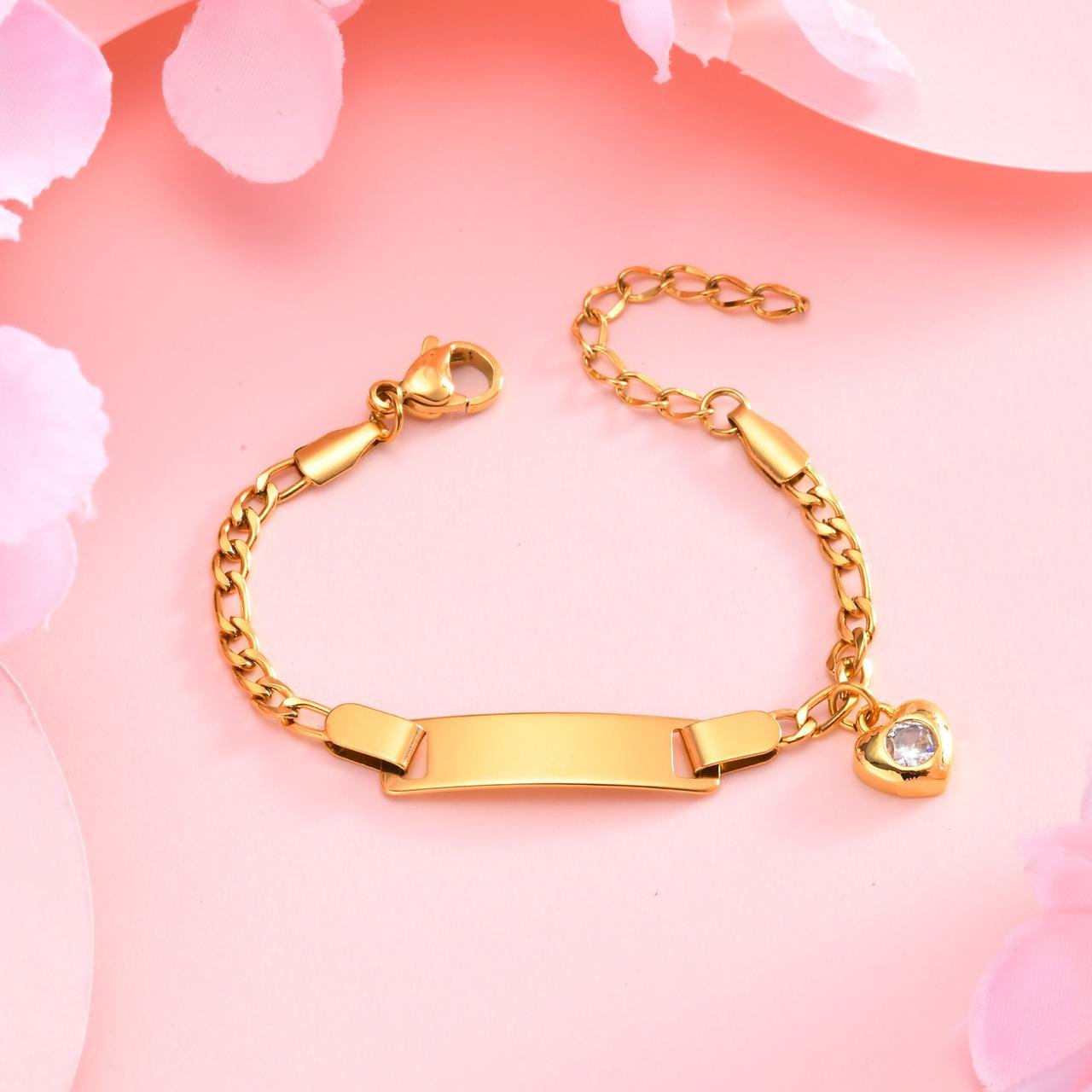 Pulsera infantil placa dije corazon acero inoxidable cantidad