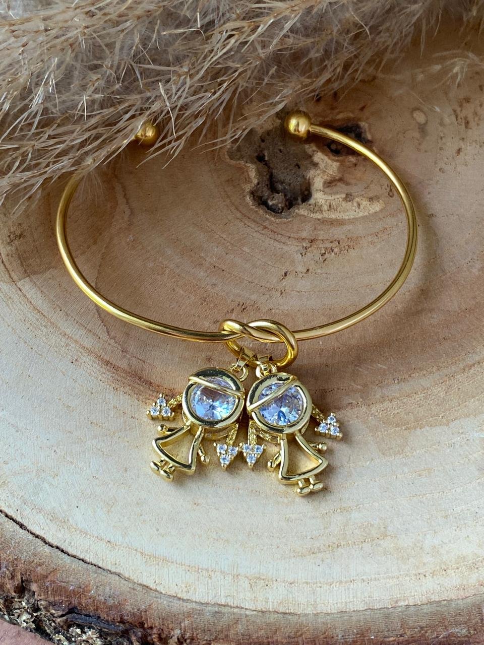 Pulsera personalizada dos dijes chapada en oro de 18k