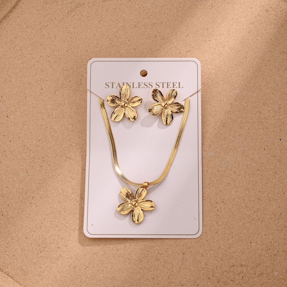 Set flor de Jazmin acero inoxidable chapado en oro de 18k