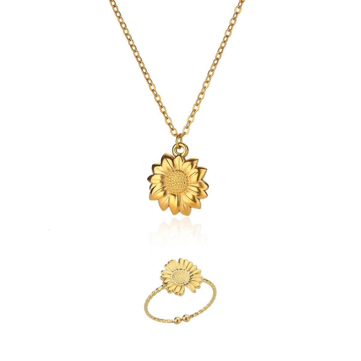 set girasol collar y anillo acero inoxidable chapado en oro de 18k