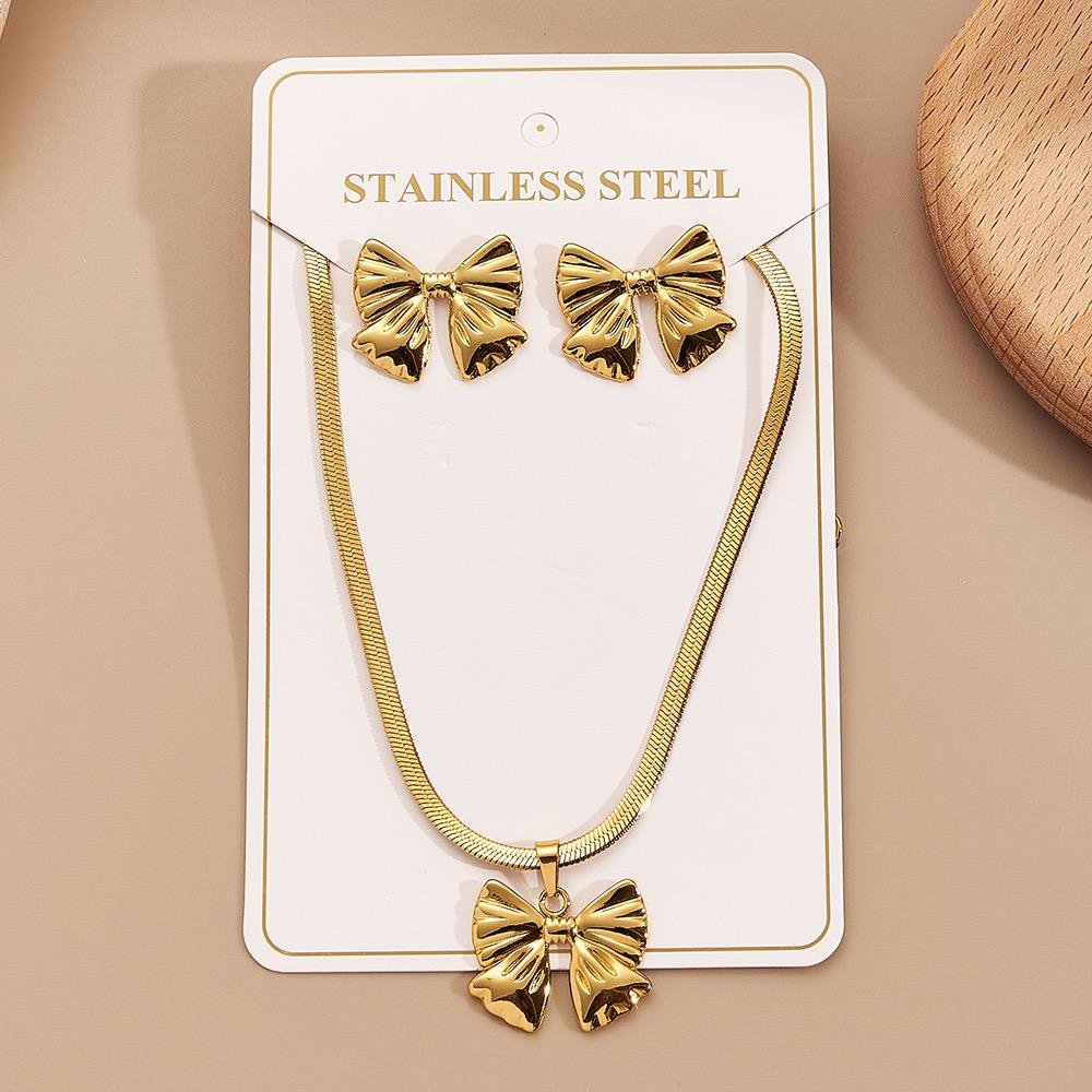 Set moña cadena snake acero inoxidable chapado en oro de 18k