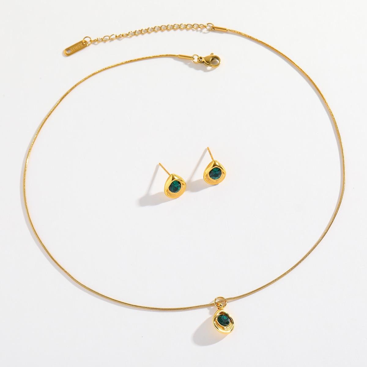 Set verde medio circulo Acero inoxidable chapado en oro de 18k